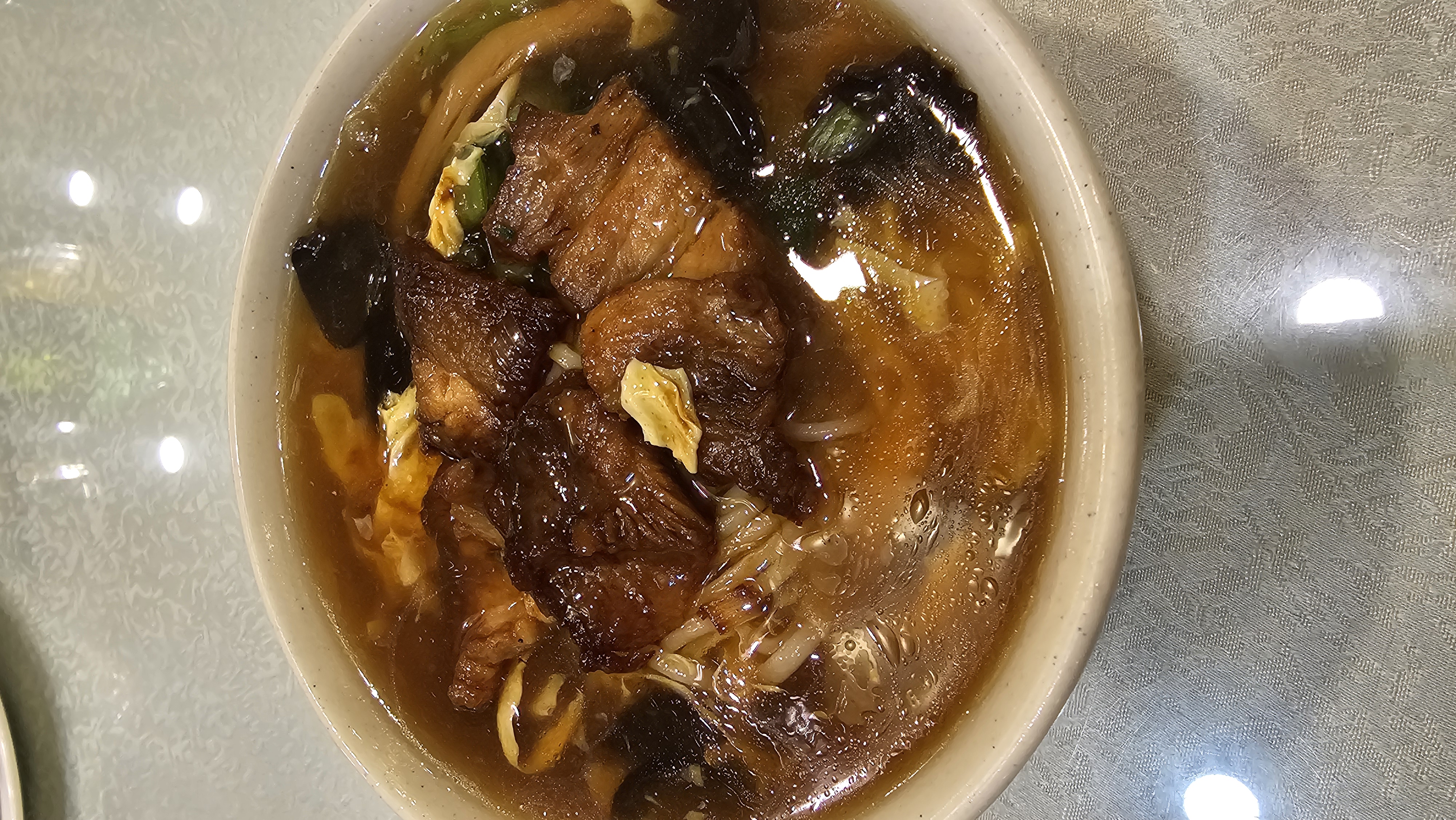 먼저 탕수육. 비계가 살작 있는 작은 고기맛이 나는 앵두 모양 탕수육,달콤새콤, 향도 좋고 플레이팅도 눈길을 끌었지만, 특별 하진 않았고 류로미엔은 수타면으로 면발이 가늘고 쫄깃함은 덜했지만 국물 맛은 목이버섯향이 가득하고 전분끼가 섞인 걸죽한 국물로 맛있었다 미판은 평범한 쌀밥 전체적으로 맛이 없는 건 아니지만, 기대치가 너무 높았던 탓일까. 한마디로 말하자면 "맛은 있지만, 기대 만큼은 아님."