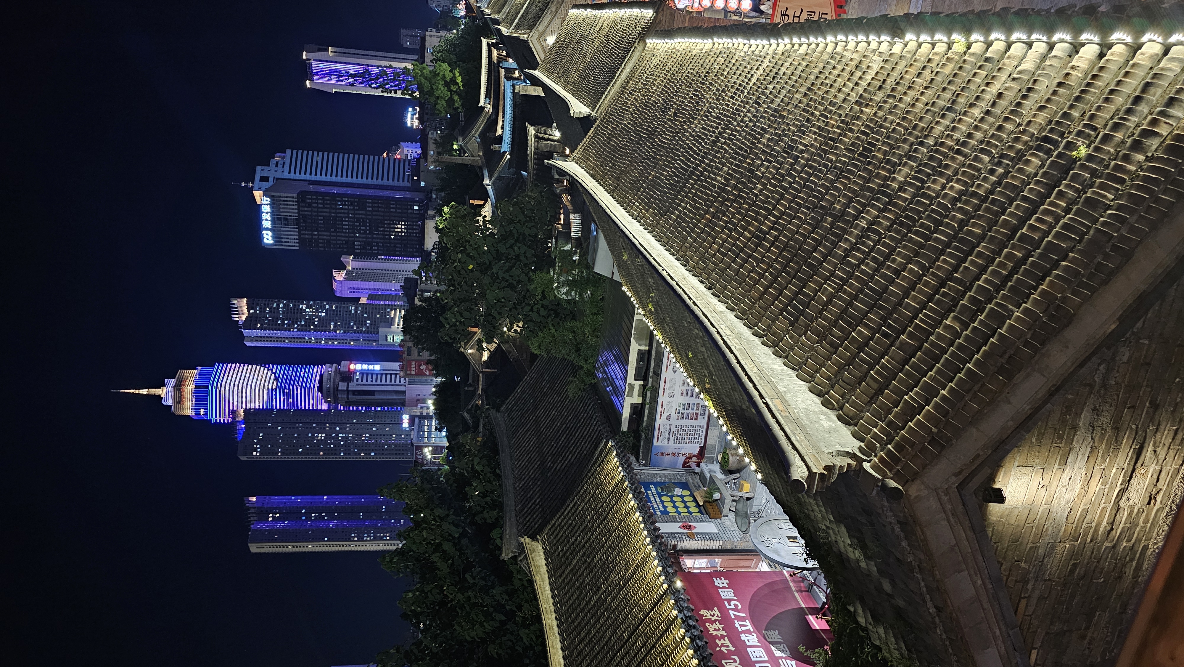 식사 후에는 별다른 정보 없이 소청리 야시장으로 발걸음을 옮겼다. 그런데 이게 진짜 대박. 문 하나 통과했을 뿐인데 분위기가 180도 달라진다. 현대적인 고층 빌딩을 배경으로, 고풍스러운 기와지붕 골목이 쭉 펼쳐진다. 거리를 따라 이어진 등불과 간판들, 그리고 끊임없이 흘러나오는 음악. 마치 타임슬립이라도 한 듯, 과거와 현재가 나란히 손잡고 걷는 기분.