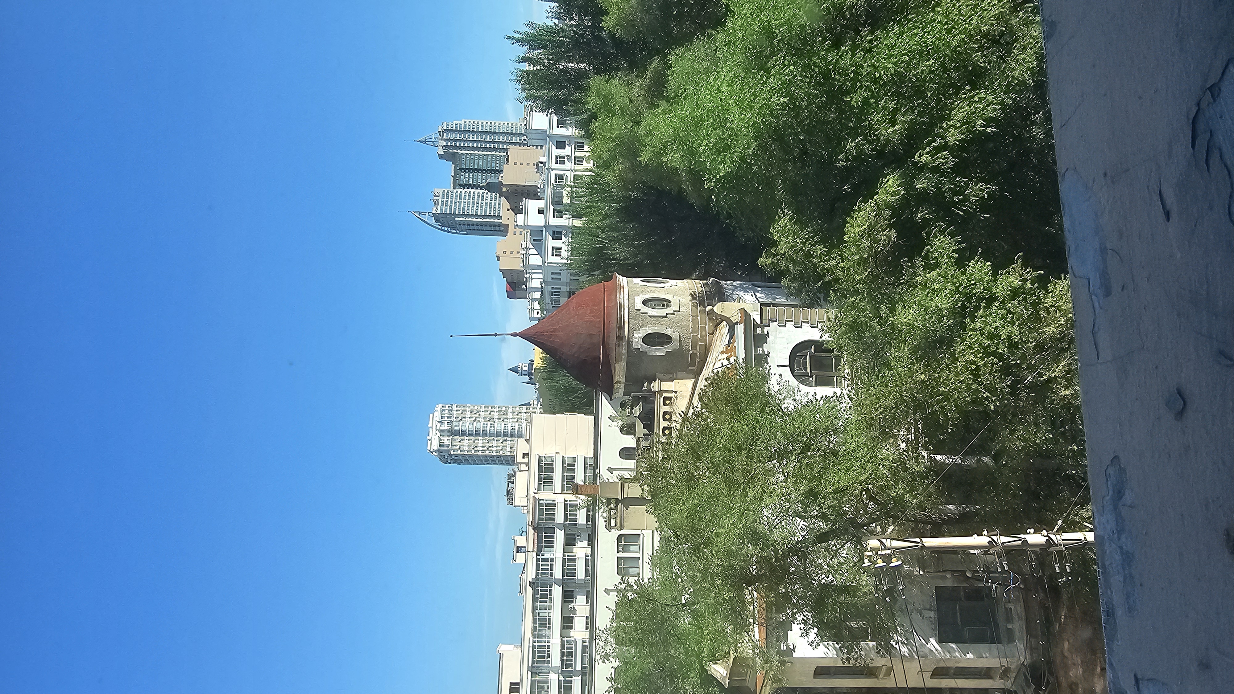호텔 방에 들어서면 또 하나의 즐거움, 바로 창밖 풍경. 커튼을 걷으면 펼쳐지는 하얼빈의 독특한 스카이라인—푸른 숲 너머로 붉은 원뿔 지붕을 이고 있는 러시아풍 건물이 고개를 내밀고, 그 뒤로는 현대식 고층 빌딩들이 솟아 있다. 마치 “러시아와 중국이 한 장의 사진 속에서 공존하는 도시”를 그대로 보여주는 듯. 아침 햇살이 붉은 지붕 위로 살짝 번지면, 마치 오래된 엽서 속 장면이 현실로 튀어나온 것 같은 착각이 든다.